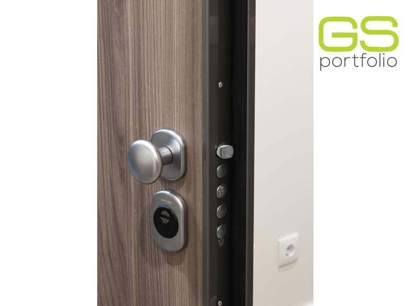 - Puerta de seguridad / entrada revestida con hoja de vinilo - VINYL TOUCH - Olmo Oscuro.