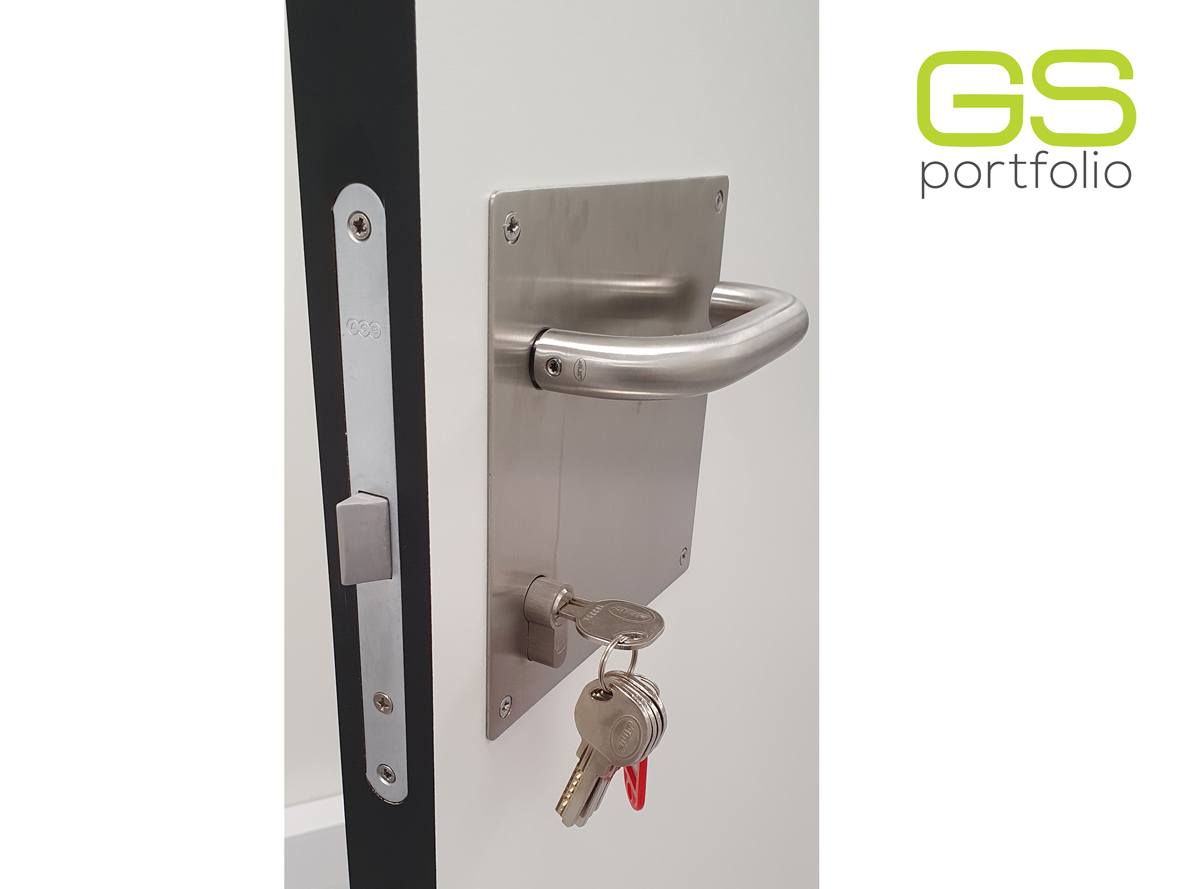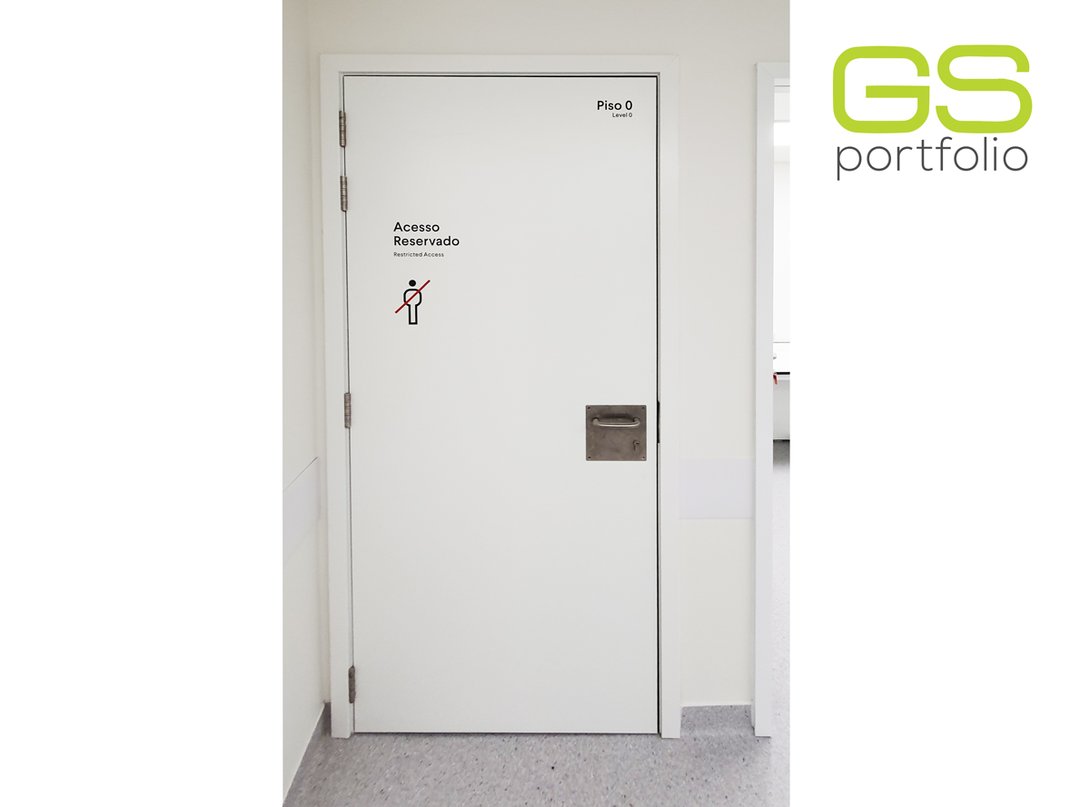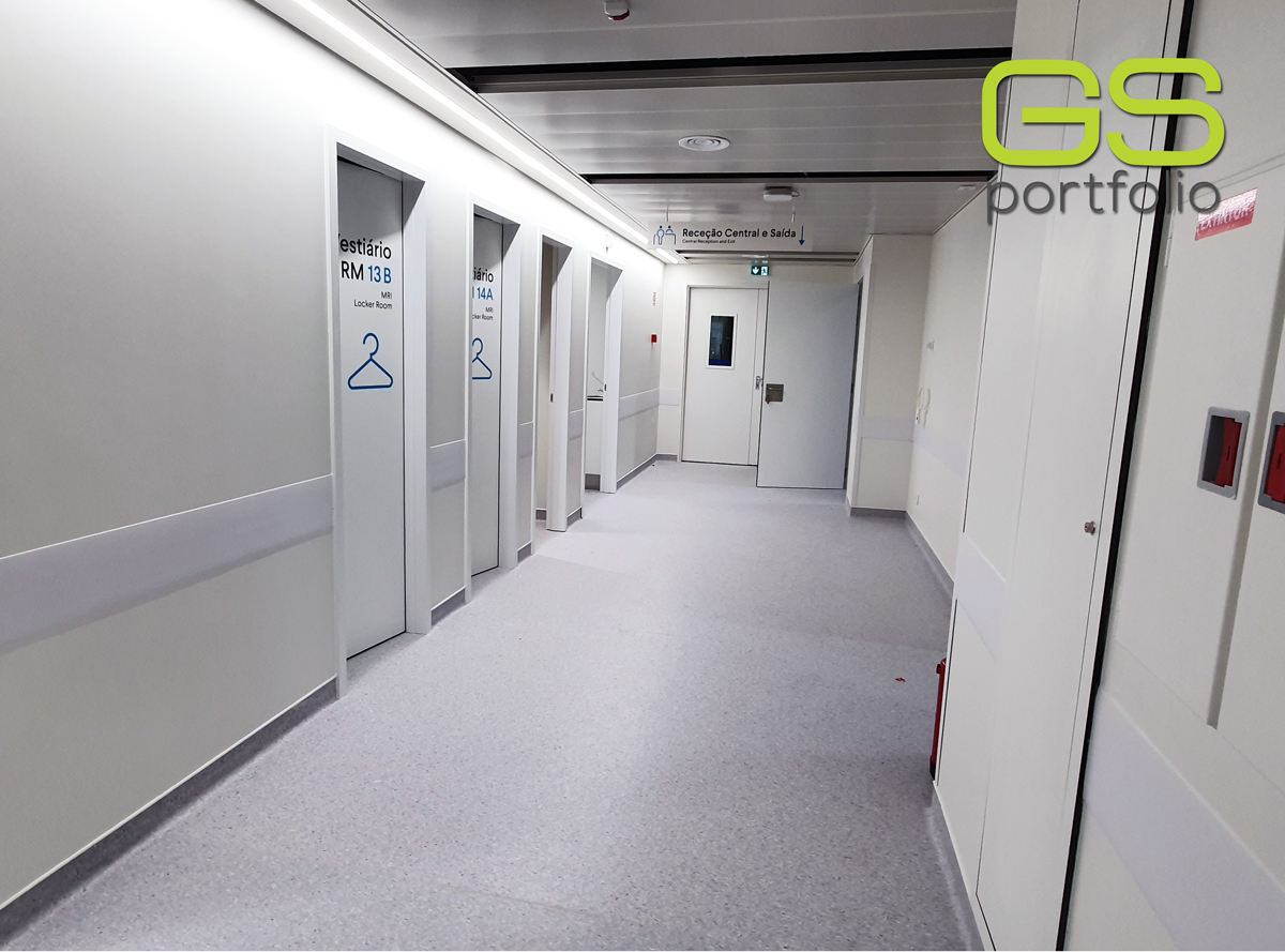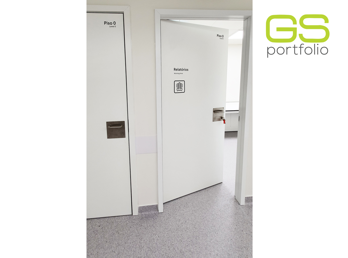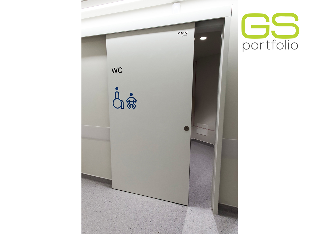 - Portas hospitalares GS COMPACT 3 B070 FA EPS 40 mm (1 Folha e 2 Folhas). Portas com interior de 40 mm. Acabamento: Lacado RAL 9016 mate.